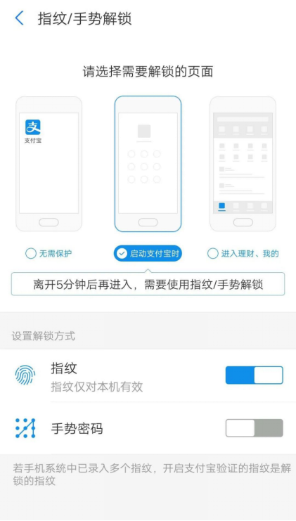 3.录制成功后,当我们再次进入支付宝时,就需要指纹解锁才可以进入。这样就大大的提高了我们账户的安全性。